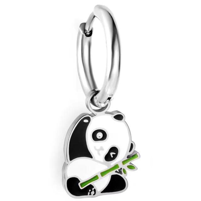 エナメルアニマルチャームフープピアス(パンダ)/1個販売 リングピアス 動物 デート ペットショップ メンズ レディース ステンレスピアス 18G 18ゲージ 軟骨 耳たぶ イヤーロブ ヘリックス 銀色 ワンタッチ 簡単装着 可愛い エナメルカラー カラフル 揺れる