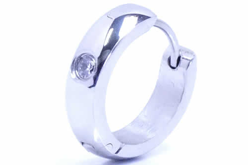 プレーンなフープピアスにジュエルをセットした綺麗めスタイルのフープピアス。細身のリングでこの大きさって、なかなかないのでスタッフにも愛用者が多い。フープピアスのセンター部分から中折れするワンタッチタイプのリングピアスなので、ピアス初心者でも簡単に着脱出来るピアスです。素材も安心の医療用サージカルステンレスなので、ファーストピアスとしても使えるオススメのステンレスアクセサリーです。肉厚でしっかりとした作りと、ボディピアス好きならご存知のサージカルステンレスの輝きが、高級感を発揮してくれるサージカルアクセサリー。単品販売(片耳販売)なので、必要な数量だけ買えて、お値段もリーズナブルなので、いくつも揃えたくなるステンピアスです。