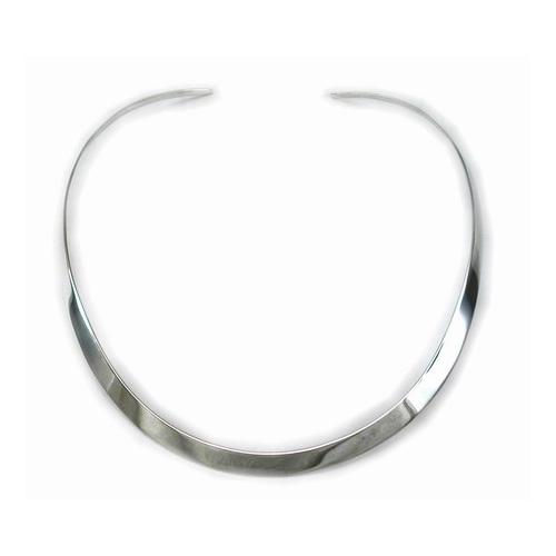 シンプルフラットなバングルタイプのシルバーネックレスです。ゆるやかにカーブを描くフォルムが絶妙のフィット感を生み出すシルバーアクセサリーです。ネックレスチェーン等とは違って、固定タイプのチョーカーは、上品なスタイルをアシストしてくれる。ドレッシーなスタイルと高級感のあるシルバー925の素材感が大人の女性を演出してくれるシルバーアクセサリーです。シ ンプルなシルバーチョーカーはペンダントトップを通してつかったり、シンプルなネックレスチェーンとの重ね付けしたり、使い方は自由自在のオススメのシルバージュエリー。シンプルですが個性的なチョーカーが存在感を発揮してくれます。プレゼントとしても◎フラットなボディがシルバー925の艶やかな輝きを堪能させてくれるシルバーアクセサリー。カジュアルなスタイルだけでなくスーツなどのフォーマルなスタイルにもバッチリきまるネックレスです。