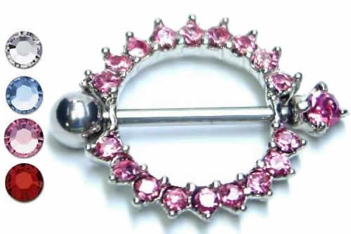 [ 14G ニップル 乳首 ] ソレイユニップルピアス ストレートバーベル シールド 14ゲージ 胸 乳輪 ボディピアス メンズ レディース サージカルステンレス316L ボディーピアス 乳首ピアス ジュエリー アクセサリー ラインストーン ジルコニア 別売り16Gに変更可能