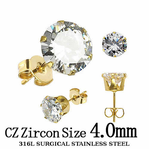 ゴールドロイヤルジュエルピアス 4mm クリスタル 1個販売 ステンレスピアス 金メッキ イエローゴールド サージカルステンレス316L メンズ レディース 20G 20ゲージ 低アレルギー たて爪 立て爪 ジルコニア クリスタル 軟骨 耳 結婚式 パーティ スーツ フォーマル 大人