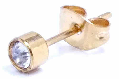 4mmゴールドジュエルステンレスピアス(クリスタル)/1個販売 クリア 小さい ミニ 金色 サージカルステンレス ジルコニア台座ピアス シンプル メンズ レディース シンプル ファーストピアスにも 20G 20ゲージ 軟骨 耳 キャッチピアス