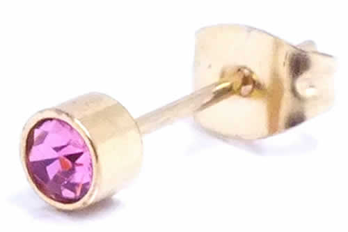 4mmゴールドジュエルステンレスピアス(ピンク)/1個販売 金色 スモール 小さい ミニ サージカルステンレス ジルコニア台座ピアス シンプル メンズ レディース シンプル ファーストピアスにも 20G 20ゲージ 軟骨 耳 キャッチピアス