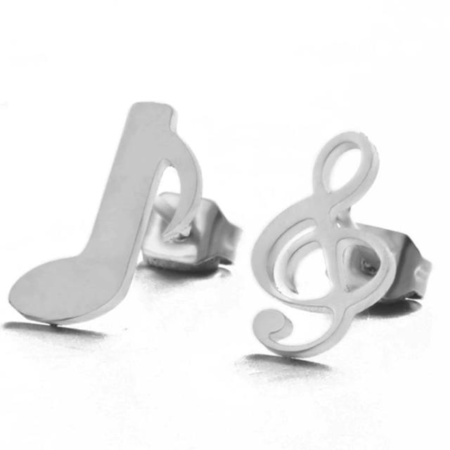 ト音記号と音符をモチーフにしたステンレス素材のスタッドピアス。