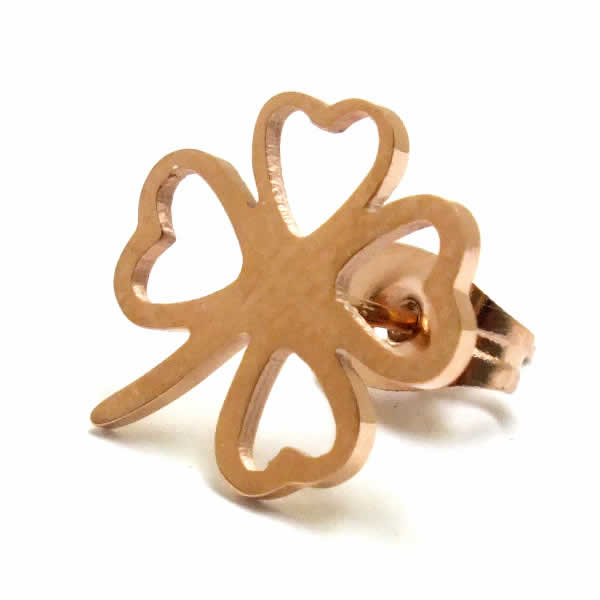 ピンクゴールドクローバーステンレスピアス/1個販売 四つ葉 四葉 幸せ 幸運 サージカルステンレス316L 20G 20ゲージ レディース メンズ ペア用としても キャッチピアス 軟骨 耳たぶ