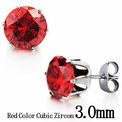 キュービックジルコニアピアス(CZレッド) 3mm クリスタル 1個販売 ステンレスピアス サージカルステンレス316L メンズ レディース 20G 20ゲージ アレルギー たて爪 立爪 ジルコニア 軟骨 耳 結婚式 パーティ スーツ 大人 キャッチピアス スタッドピアス 赤色 小さい ミニ
