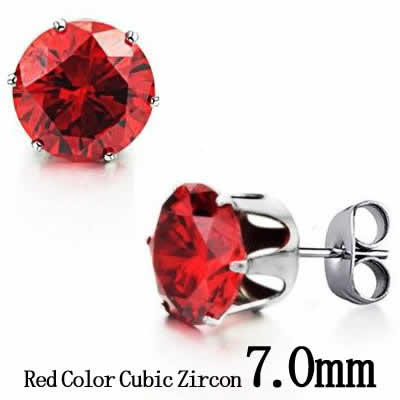 キュービックジルコニアピアス(CZレッド) 7mm クリスタル 1個販売 ステンレスピアス サージカルステンレス316L メンズ レディース 20G 20ゲージ アレルギー たて爪 立爪 ジルコニア 軟骨 耳 結婚式 パーティ スーツ 大人 キャッチピアス スタッドピアス 赤色 大きいめ