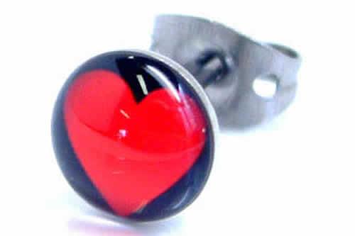 黒の台座に赤のハートをデザインしたステンレスピアス。黒と赤のコントラストをきかせたハートは可愛くなりすぎず、カッコ可愛いハートのピアスです。ボディーピアスの素材としてよく使われる医療用のサージカルステンレスを通常のピアスサイズで製作した人気のステンレスジュエリー。また素材が比較的低ア レルギーとされるサージカルステンレスなのでファーストピアスにも利用できるステンピアスは初心者から上級者まで愛用できる。しかも、単品販売(片耳売り)なので、無駄なく、手頃な価格でゲットできるステンレスアクセサリー。ステンレスは永遠に変わらない素材として、ペアアクセサリーにもよく使われま す。もちろん、ボディピアスやシルバーアクセサリーとの相性もばっちり!デザインが豊富でプレゼントにも最高!