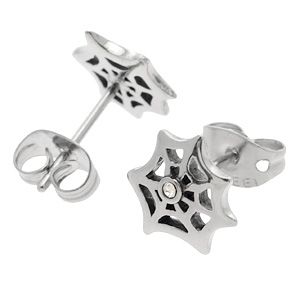 蜘蛛の巣をモチーフにしたデザインのセンターにクリスタルのキュービックジルコニアが高級感をプラスするステンレスピアスです。プチハードロックな雰囲気が楽しめるサージカルピアスです。ステンレスピアスはボディピアスの素材としてもよく使用されるとおり、比較的低アレルギー素材なので、ファーストピアスやセカンドピアスにも使える。また、1個から買えるので、無駄がなく価格も手ごろ。有名人も愛用者が多く、プレゼントにも最適のステンレスピアスです。耳たぶはもちろん、ヘリックスやトラガスなどの軟骨ピアスにも使えるのがステンレスピアスのいいところ。キャッチタイプなので、ピアス初心者でも簡単に着脱できる。デザインが豊富なのも嬉しい。