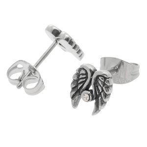細やかに細工された躍動感のある翼にクリスタルのジルコニアをセットしたV系ステンレスピアス。男女を問わず装着できるステンレスピアスはペアでも!ボディーピアスの素材としてよく使われる医療用のサージカルステンレスを通常のピアスサイズで製作した人気のステンレスジュエリー。また素材が比較的低ア レルギーとされるサージカルステンレスなのでファーストピアスにも利用できるステンピアスは初心者から上級者まで愛用できる。しかも、単品販売(片耳売 り)なので、無駄なく、手頃な価格でゲットできるステンレスアクセサリー。ステンレスは永遠に変わらない素材として、ペアアクセサリーにもよく使われま す。もちろん、ボディピアスやシルバーアクセサリーとの相性もばっちり!デザインが豊富でプレゼントにも最高!