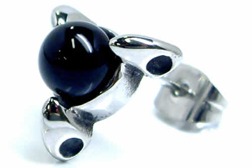 サイバーなデザインの台座にオニキスをセットしたステンレスピアス。スタイリッシュなデザインと漆黒のオニキスの色合いがよくマッチしたオシャレなステンピアス。ボディピアスの素材としてよく使われる医療用のサージカルステンレスを通常のピアスサイズで製作した人気のステンレスジュエリー。また素材が比較的低ア レルギーとされるサージカルステンレスなのでファーストピアスにも利用できるステンピアスは初心者から上級者まで愛用できる。しかも、単品販売(片耳売り)なので、無駄なく、手頃な価格でゲットできるステンレスアクセサリー。ステンレスは永遠に変わらない素材として、ペアアクセサリーにもよく使われま す。もちろん、ボディピアスやシルバーアクセサリーとの相性もばっちり!デザインが豊富でプレゼントにも最高!