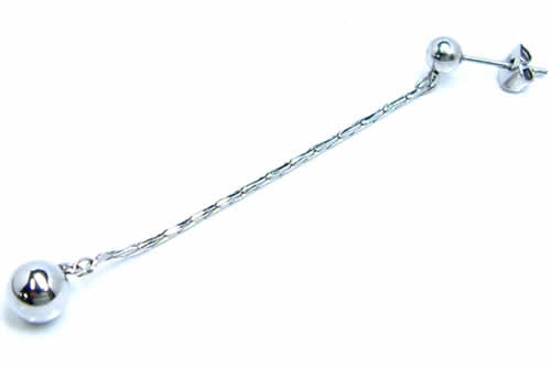 先端にボールをセットしたロングチャームピアス。シンプルながらセクシーさをアピールできる大人の女性にオススメのサージカルピアス。ボディーピアスの素材としてよく使われる医療用のサージカルステンレスを通常のピアスサイズで製作した人気のステンレスジュエリー。また素材が比較的低ア レルギーとされる医療用サージカルステンレスなのでファーストピアスやセカンドピアスにもオススメ!ステンピアスは初心者から上級者まで愛用できる。しかも、単品販売(片耳売り)なので、無駄なく、手頃な価格でゲットできるステンレスアクセサリー。ステンレスは永遠に変わらない素材として、ペアアクセサリーにもよく使われま す。もちろん、ボディピアスやシルバーアクセサリーとの相性もばっちり!デザインが豊富でプレゼントにも最高!