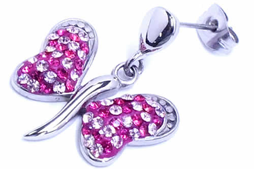 宝石箱から飛び出してきたような蝶々のピアス。高級感のあるジュエル使いが女性を虜にするピアスです。ボディーピアスの素材としてよく使われる医療用のサージカルステンレスを通常のピアスサイズで製作した 人気のステンレスジュエリー。また素材が比較的低ア レルギーとされるサージカルステンレスなのでファーストピアスにも利用できるステンピアスは初心者から上級者まで愛用できる。しかも、単品販売(片耳売り)なので、無駄なく、手頃な価格でゲットできるステンレスアクセサリー。ステンレスは永遠に変わらない素材として、ペアアクセサリーにもよく使われま す。もちろん、ボディピアスやシルバーアクセサリーとの相性もばっちり!デザインが豊富でプレゼントにも最高!