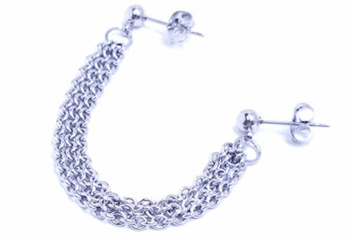 シンプルなピアスを3本のチェーンでつなげたステンレスピアス。耳たぶ同士をつなげてもいいし、ヘリックスと耳たぶをつなげてもいいし、好きなピアスホールをつなげる存在感あるピアス。ボディピアスの素材としてよく使われる医療用のサージカルステンレスを通常のピアスサイズで製作した人気のステンレスジュエリー。また素材が比較的低ア レルギーとされるサージカルステンレスなのでファーストピアスにも利用できるステンピアスは初心者から上級者まで愛用できる。しかも、単品販売(片耳売り)なので、無駄なく、手頃な価格でゲットできるステンレスアクセサリー。もちろん、ボディピアスやシルバーアクセサリーとの相性もばっちり!デザインが豊富でプレゼントにも最高!キャッチだけの販売もあるので、キャッチをなくしても安心。