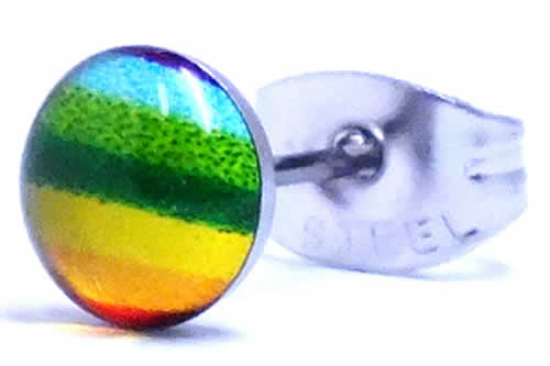 虹をそのままピアスに閉じ込めた綺麗なステンレスピアス。ボディピアスでも人気のデザイン。大きさも程よく、耳たぶだけでなくヘリックスピアスにもオススメのピアス。ボディーピアスの素材としてよく使われる医療用のサージカルステンレスを通常のピアスサイズで製作した人気のステンレスジュエリー。また素材が比較的低アレルギーとされる医療用サージカルステンレスなのでファーストピアスにも利用できるサージカルピアス。また、ステンレスは丈夫で軽量なので、毎日使いにもオススメのキャッチピアスです。ステンピアスは初心者から上級者まで愛用できる。しかも、単品販売(片耳売り)なので、無駄なく、手頃な価格でゲットできるステンレスアクセサリー。もちろん、ボディピアスやシルバーアクセサリーとの相性もばっちり!デザインが豊富でプレゼントにも最高!