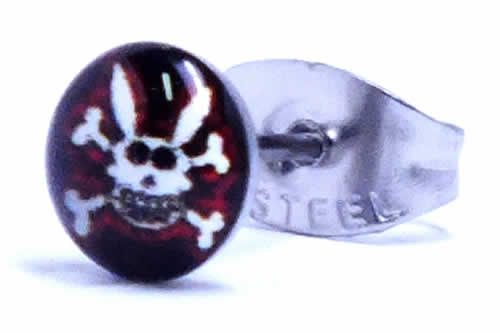 ドクロとウサギを融合させたユニークなステンレスピアス。このスカルピアスなら女性も男性も装着できる遊び心のあるデザイン。大きさも程よく、耳たぶだけでなくヘリックスピアスにもオススメのピアス。ボディーピアスの素材としてよく使われる医療用のサージカルステンレスを通常のピアスサイズで製作した人気のステンレスジュエリー。また素材が比較的低アレルギーとされる医療用サージカルステンレスなのでファーストピアスにも利用できるサージカルピアス。また、ステンレスは丈夫で軽量なので、毎日使いにもオススメのキャッチピアスです。ステンピアスは初心者から上級者まで愛用できる。しかも、単品販売(片耳売り)なので、無駄なく、手頃な価格でゲットできるステンレスアクセサリー。もちろん、ボディピアスやシルバーアクセサリーとの相性もばっちり!デザインが豊富でプレゼントにも最高!
