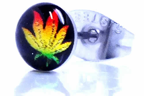 ラスタカラーにきめたガンジャが綺麗なステンレスピアス。大きさも程よく、耳たぶだけでなくヘリックスピアスにもオススメのピアス。ボディーピアスの素材としてよく使われる医療用のサージカルステンレスを通常のピアスサイズで製作した人気のステンレスジュエリー。また素材が比較的低アレルギーとされる医療用サージカルステンレスなのでファーストピアスにも利用できるサージカルピアス。また、ステンレスは丈夫で軽量なので、毎日使いにもオススメのキャッチピアスです。ステンピアスは初心者から上級者まで愛用できる。しかも、単品販売(片耳売り)なので、無駄なく、手頃な価格でゲットできるステンレスアクセサリー。もちろん、ボディピアスやシルバーアクセサリーとの相性もばっちり!デザインが豊富でプレゼントにも最高!