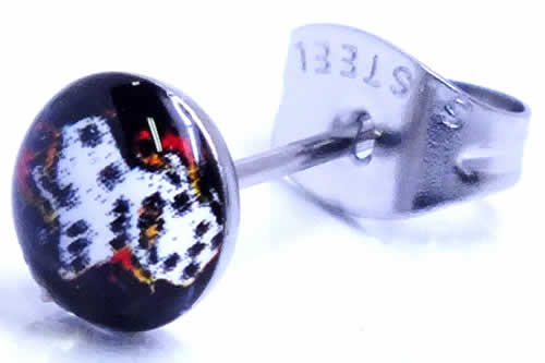 2個のサイコロが燃えるパンクロックなステンレスピアス。さりげなさがお奨め!大きさも程よく、耳たぶだけでなくヘリックスピアスにもオススメのピアス。ボディーピアスの素材としてよく使われる医療用のサージカルステンレスを通常のピアスサイズで製作した人気のステンレスジュエリー。また素材が比較的低アレルギーとされる医療用サージカルステンレスなのでファーストピアスにも利用できるサージカルピアス。また、ステンレスは丈夫で軽量なので、毎日使いにもオススメのキャッチピアスです。ステンピアスは初心者から上級者まで愛用できる。しかも、単品販売(片耳売り)なので、無駄なく、手頃な価格でゲットできるステンレスアクセサリー。もちろん、ボディピアスやシルバーアクセサリーとの相性もばっちり!デザインが豊富でプレゼントにも最高!