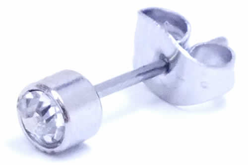 4mmジュエルステンレスピアス(クリスタル)/1個販売 小さい スモール 透明 サージカルステンレス ジルコニア台座ピアス シンプル メンズ レディース シンプル ファーストピアスにも 20G 20ゲージ 軟骨 耳 プレーン セカンドピアス スタッドピアス ラインストーン