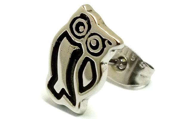 フクロウステンレスピアス/1個販売 オウル ふくろう 梟 おもしろ 鳥 20G 20ゲージ サージカルステンレス メンズ レディース キャッチピアス 軟骨 耳たぶ