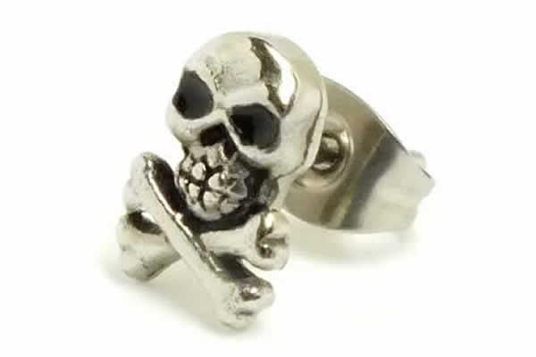 骨とドクロをデザインしたロックテイストのスカルピアス。程よい大きさと立体感のあるフォルムのガイコツピアスは、カジュアルなスタイルからフォーマルなスタイルにまで綺麗にきまる。素材も安心のサージカルステンレスなので、高級感もあり、プレゼントやペアでもオススメです。1個で買えるので、無駄もなく片方の耳だけに着けることもできる。