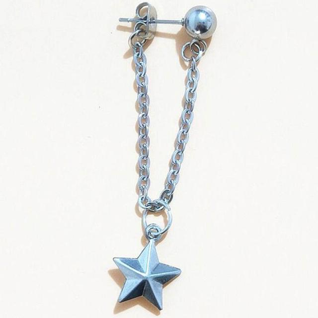 バックキャッチチェーンスター ステンレスピアス 1個販売 星 20G 20ゲージ サージカルステンレス316L メンズ レディース 立体 3D 五芒星 軟骨 耳たぶ キャッチピアス スタッドピアス ボールピアス 鎖 クサリ 揺れる おもしろ 面白い ジャケットピアス チェーンピアス 丸玉