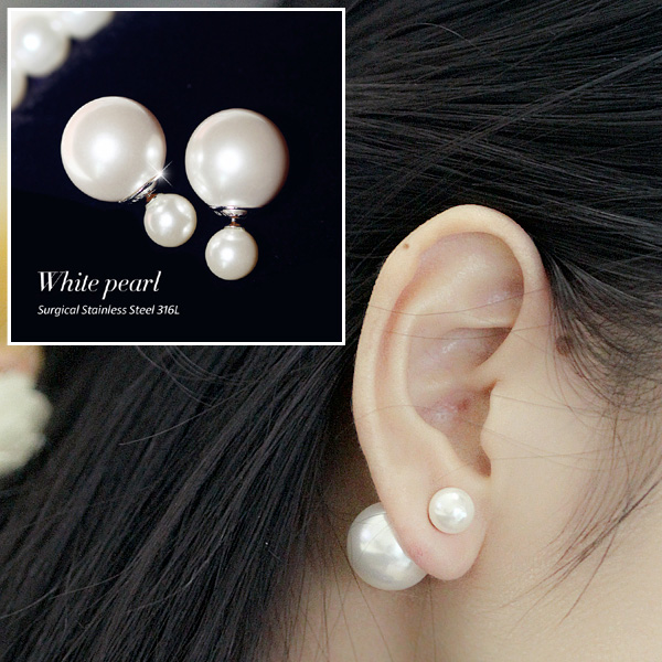 大きさの異なる2個のパールをセットした人気のバックキャッチピアスです。ポストもキャッチ部分もサージカルステンレスなのでアレルギーも安心。カジュアルなスタイルやパーティスタイル、結婚式にもオススメの真珠のピアスです。年齢層を超えて支持されるステンレスピアス。プレゼントにもオススメです。