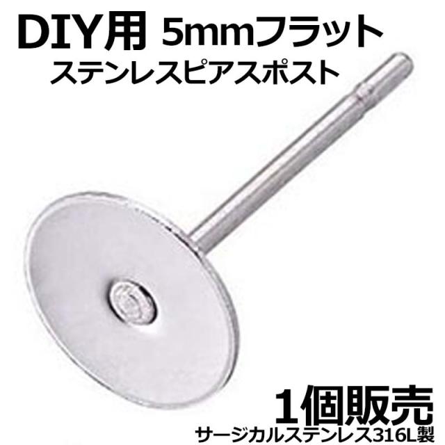5mm ステンレスDIY用スタッドピアス 1個販売 ステンレススタッドピアスポスト(フラット) サージカルステンレス316L ピアス パーツ DIY用 ポストパーツ ジュエル ストーン 天然石 ジルコニア 平ら パール 真珠 貼り付け ピアス作り クラフト リメイク 20G 20ゲージ 5ミリ