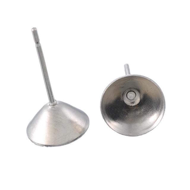 円錐型(ロート型)の台座をセットしたサージカルステンレス製のDIY用スタッドピアスポスト。台座もポストも全て医療用サージカルステンレス316Lなので安心。