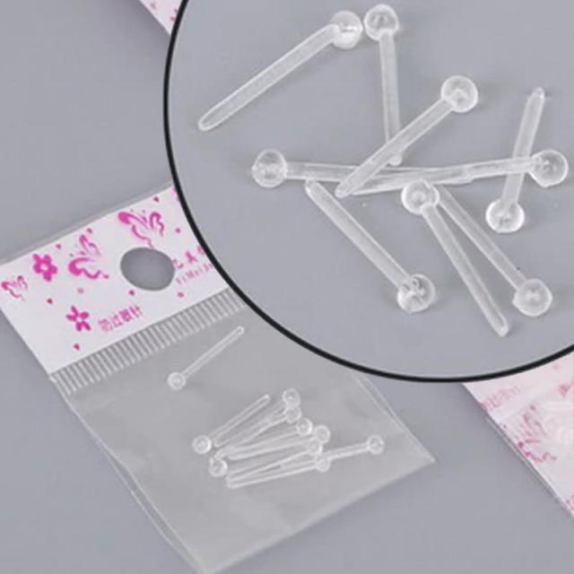 透明のアクリル製なので金属アレルギーでも安心。ポストが真っ直ぐのスタッドピアスタイプなので、装着も簡単。ファーストピアスやセカンドピアス、学校や職場でのシークレットピアスにも使えます。キャッチのピアスは耳タブだけでなく、軟骨ヘリックスやトラガスのピアスにも最適。ピアスホールを休めるためにも使えるプラスチック製ピアス。