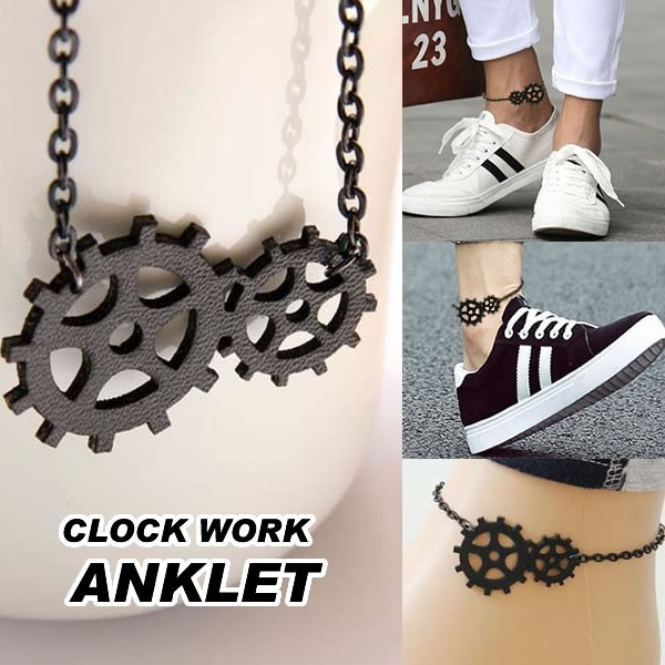 クロックワークアンクレット ゼンマイ 歯車 黒色 機械仕掛け おもしろ 面白い ユニーク レディース メンズ ペア ブレスレット 裸足 素足 足首 サンダル ミュール ビーチ 手首 フット 足輪 アクセサリー チェーン 両足 片足 夏 海