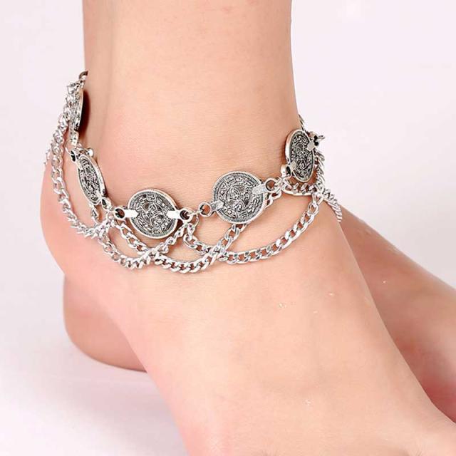 ボヘミアンコインチェーンアンクレット レディース メンズ ペア ブレスレット 裸足 素足 足首 アンティークシルバー ビーチ 手首 フット 足輪 両足 片足 鎖 クサリ メダル 古銭 おもしろ 面白い ボヘミアン エスニック アジアン プレゼント 彼氏 彼女 ギフト 誕生日 記念日