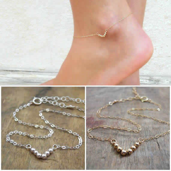 シンプルなチェーンにボールビーズパーツをセットした綺麗めスタイルのアンクレット。ボールビーズパーツにワイヤーが入っているので、好みの形状に替えることが出来る。。