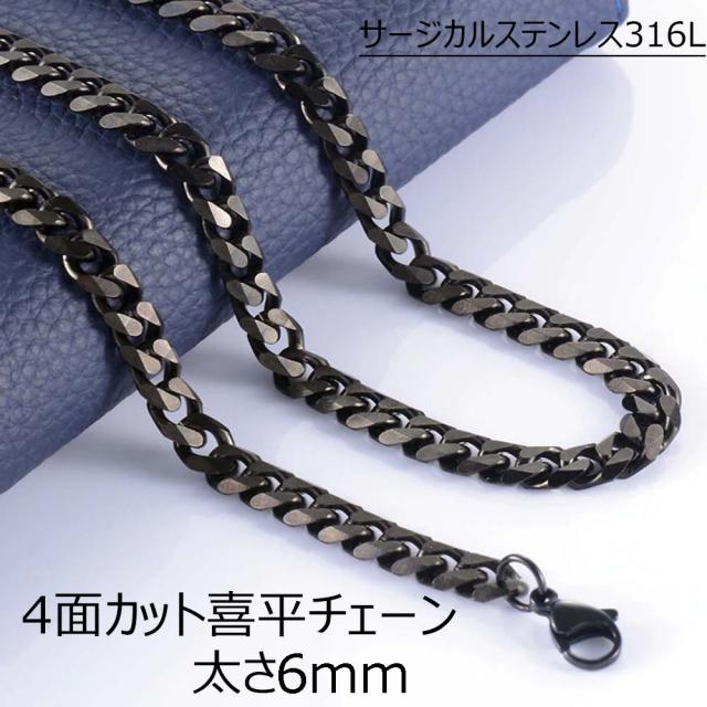 [サージカルステンレス316L製 ネックレスチェーン] 4面カット喜平ブラックチェーン (太さ:6mm) 太め 太い ステンレスチェーン チョーカー 首飾り メンズ レディース 人気 プレゼント ギフト 男の人 女の人 6ミリ おしゃれ 黒色 鎖 クサリ キヘイ 6.0mm