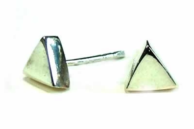 厚みのある三角形をデザインしたシルバーピアスです。スタイルを問わずコーディネートできるオールマイティなデザインが魅力のアクセサリーです。つやのある滑らかに仕上げた表面もポイントのアクセ。男女を問わず装着できるので是非男性の方もこのピアスをつけてみてください。このジュエリーの虜になる事間違いなし。