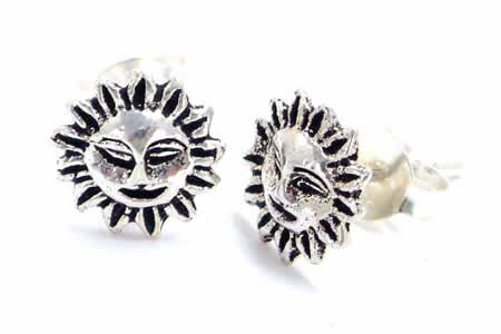 笑っているようにも見えるし、しかとしているようにも見える太陽は遊び心があふれるデザインが見所のスタッドピアスです。小振りながら威圧感を発揮してくれるアクセサリー!!エスニックな雰囲気を持つシルバーアクセサリーはカジュアルなスタイルにもぴったりの太陽ピアス。