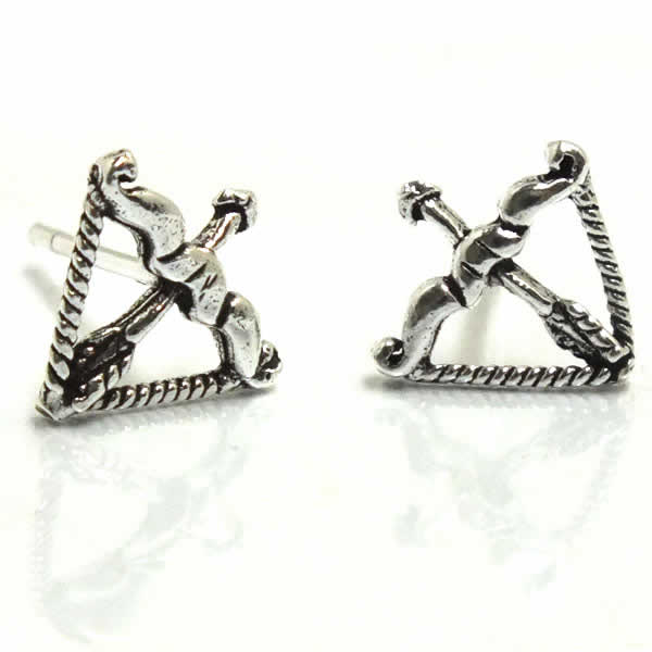 キューピッドの持つ弓矢をデザインしたシルバー925ピアス。ペアで使うのもお勧めのスターリングシルバーピアスです。高級感のあるシルバー925素材なのでプレゼントにもオススメ!メンズでもレディースでも使えるスタッドピアスです。もちろんデザイン部分だけでなくポスト部分もシルバー925です。キャッチもシルバー925素材なのがうれしい。