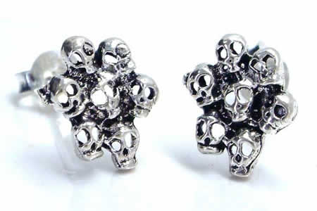 7つのスカルを合体させた不気味なシルバースカルピアス。ドクロ一つ一つの表情が微妙に異なるのがさらに不気味さをアップさせている。存在感もバッチリ!