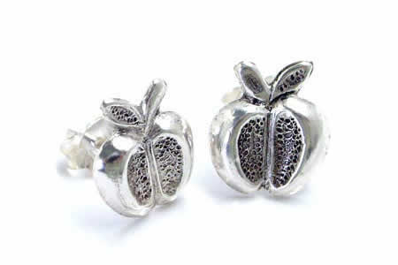 林檎スタッドピアス/1ペア 両耳 りんご アップル フルーツ 果物 シルバー925 スターリング シルバーピアス キャッチピアス メンズ レディース 20G 20ゲージ 高級 オリジナル 耳たぶ 軟骨