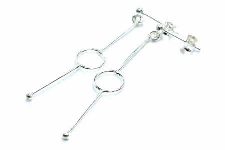 リングから伸びる上下のラインが印象的なロングチャームピアス。シルバーの素材感を楽しめるようにあえて細身でシンプルなシルバーワイヤーで仕上げながらも、きっちりと存在感をアピールできるシルバーピアスです。大胆に揺れるシルバーチャームが見る人を魅了するロングピアス。プレゼントにも最適です。