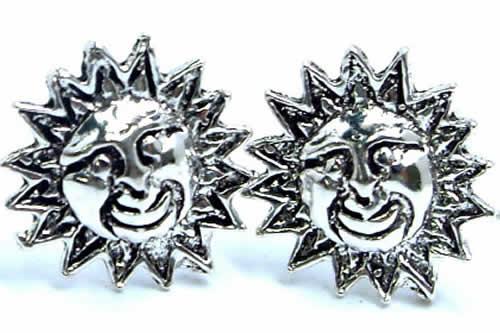 立体的で大きなフォルムでデザインされた存在感ありまくりの太陽ピアス。太陽のやさしい表情が暖かさを感じさせるシルバーピアスです。大きな太陽ピアスはこれ1個で十分にコーディネートの主役に使えるジュエリーです。耳元で微笑む太陽がいい。男女を問わず装着できるので、ペアで愛用するのもオススメ!こんなピアス着けていたら、どんな時も晴れ気分!雨男でも安心♪
