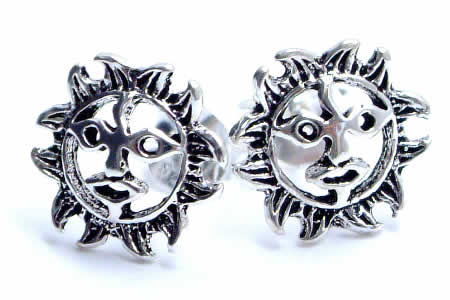 透かし彫り太陽スタッドピアス/1ペア エスニックピアス 20G 20ゲージ 両耳 シルバー925 スターリングシルバー シルバーピアス キャッチピアス メンズ レディース 高級 オリジナル 耳たぶ 軟骨エスニック