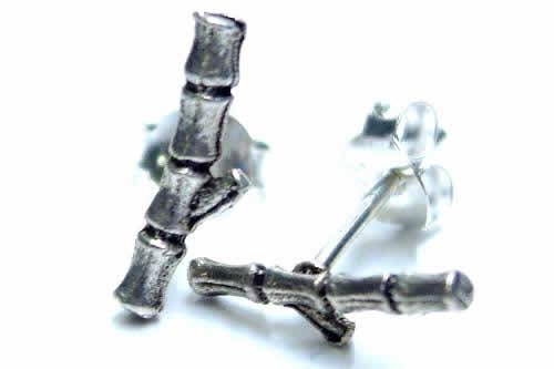 竹をモチーフにしたバンブーピアス。竹の質感とデザインがリアルに再現されている立体的なシルバーピアス。男女を問わないユニセックスなシルバーアクセサリーです。竹をデザインすることでオリエンタルな雰囲気に仕上げたシルバーアクセサリーは、パンダも間違って食べに来る?!グリーンピアッシングらしいユニークで個性的なアクセサリーです。。