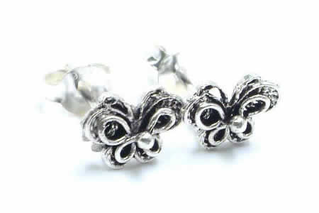 女性に人気の高い蝶をデザインしたシルバーピアスです。蝶の輪郭をデザインした所に、デザインワイヤーをコイル状に蝶の輪郭の中にデザインし、その上に、シルバーワイヤーで立体感を持たせるように蝶の上にデザインしたシルバーピアス。セクシーなシルエットと、立体感のあるデザインが大人の雰囲気を醸し出すバタフライピアスです。蝶の羽根の部分はデザインワイヤーをコイル状にセットしているので、蝶々の羽根の間から肌が透けて見える綺麗なシルバーピアスです。今までの蝶のピアスとはちょっと違う手の込んだ逸品です。プレゼントにも喜んでもらえるチョウチョウのピアスです。