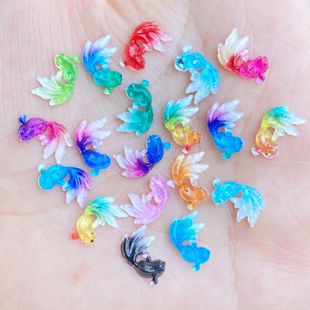 色鮮やかで綺麗な小さい金魚のモチーフは足の爪や手の指のネイル、スマホや小物を飾るデコレーションにもおすすめのプラスティック製ハンドメイドパーツです。