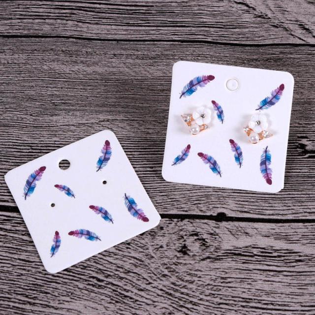 50mmx50mm 2穴スクエアピアス台紙 (フェザー) 5枚セット アクセサリー用 ピアス用 2ホール 2個穴 フリマ イヤリング 業務用 ディスプレイ ピアス作り お店 卸 販売 値札 紙 ペーパータグ 四角形 5組セット DIY ばら売り クラフト 店舗 プレゼント ギフト 手作り