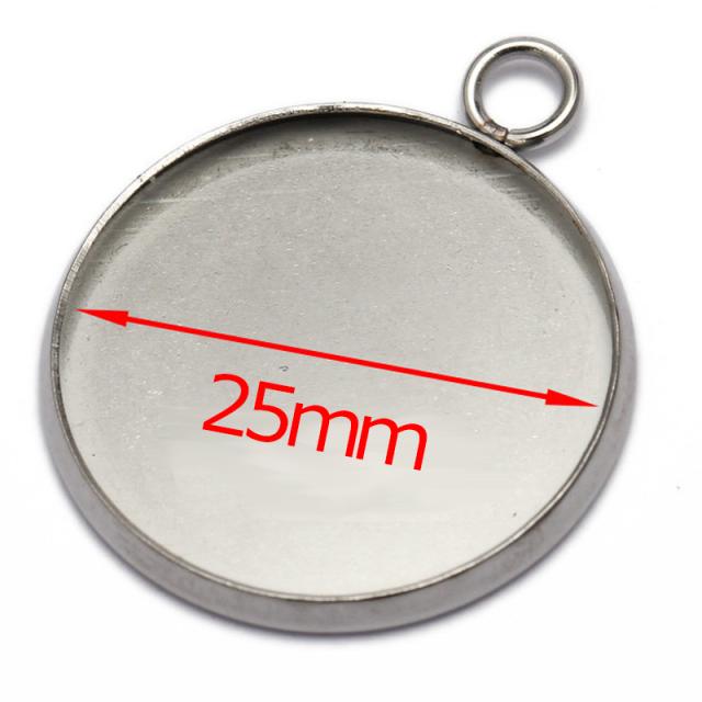 25mm用ミール皿台座ステンレスDIY用ペンダントチャーム(丸冠平行付け) 丸型 丸い ネックレス パーツ 天然石 ストーン 揺れる チョーカー 手作り ガラスドーム用 写真をはる カボーション用 カボション用 自作 製作 クラフト 部品 金具 マルカン トップ メンズ レディース