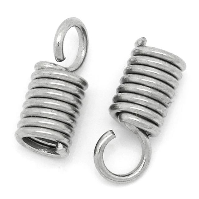 スプリング状のネックレス用エンドパーツ。ステンレス製なので錆びにくく、このパーツとカニカンがあればネックレスの止めが簡単にできる。 ブレスレットの修理や手作りのアンクレットなど留め具など、色々な修理DIYパーツに使えるステンレスパーツです。