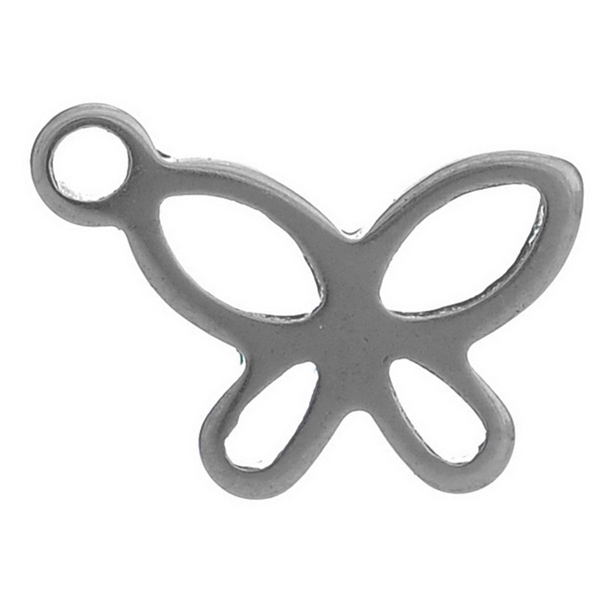 透かしの蝶々をデザインしたサージカルステンレス316L素材のステンレスパーツ。ピアスやネックレスのチャームパーツや、ブレスレットやアンクレットのパーツなど、アクセサリーのデコレーションやDIY、修理などに使える。しかも安心で丈夫なステンレス素材なので、高級感もあって低アレルギー、丈夫で長持ちしてくれるのもうれしい。自分でアクセサリーを作る人には最適のアイテムです!