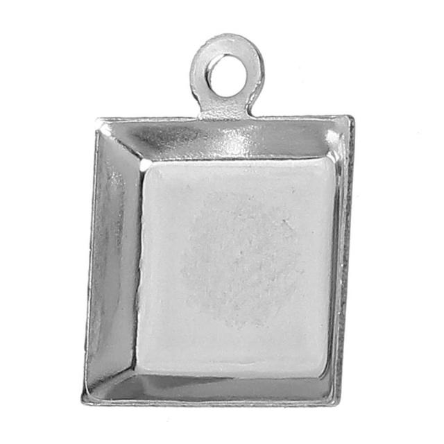 8.5mmスクエア台座ステンレスDIY用ペンダントチャーム 四角形 サージカルステンレス ネックレス パーツ 天然石 ストーン カボション 貼り付け 揺れる チョーカー フリマ 手作り ガラスドームをはる 写真をはる
